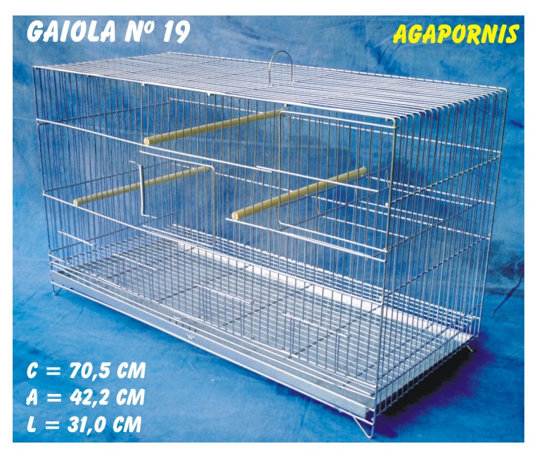 Abaixo temos a imagem de uma gaiola ideal para a reprodução de agapornis. Estas gaiolas possuem suporte interno para a colocação do ninho e uma entrada especial para retirarmos e colocarmos o ninho sem muito risco de escape e de estresse dos agapornis. Evite colocar os poleiros acima das vasilhas de comida, e coloque bebedouros externos, pois evitam a contaminação frequente da água.