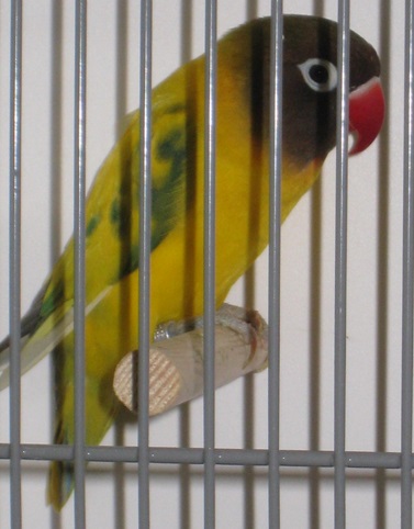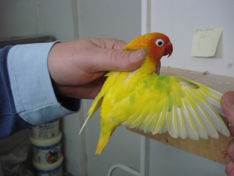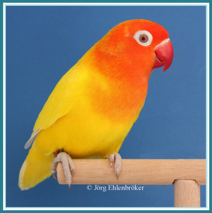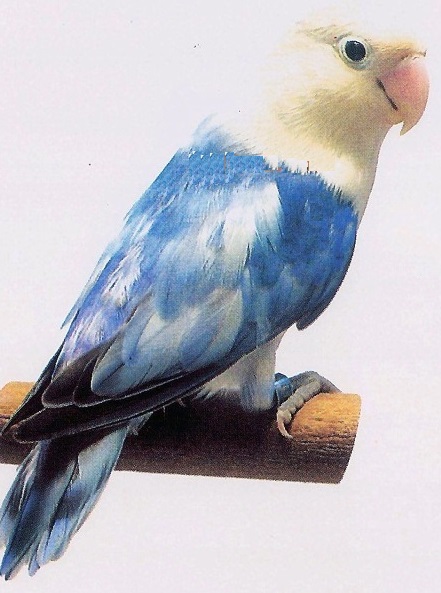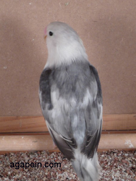 Estes agapornis possuem alelo recessivo que reduzem em 100% da pigmentação da pena. Na linha verde são conhecidos como lutinos e na linha azul como albino. Os olhos destas aves apresentam coloração vermelha